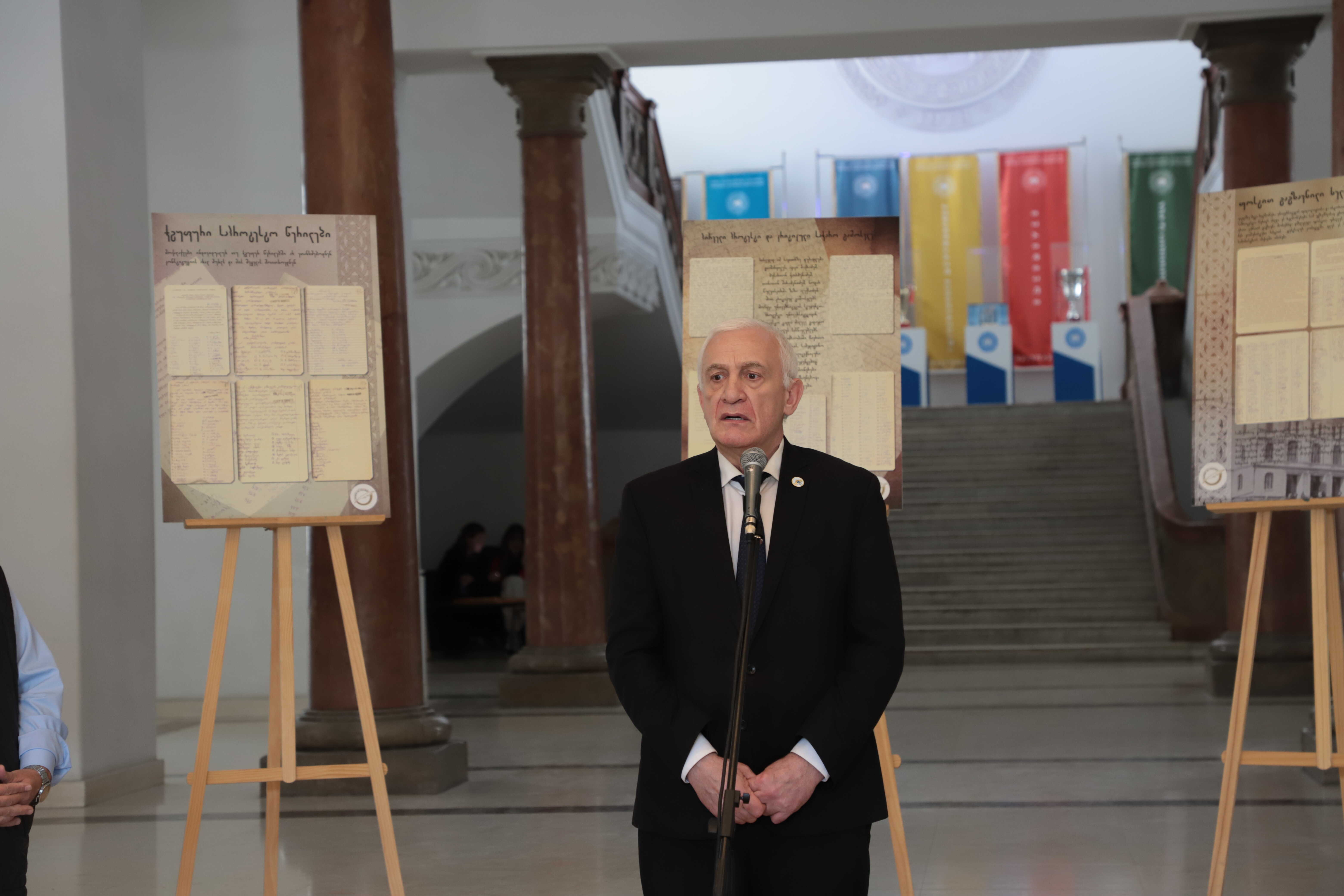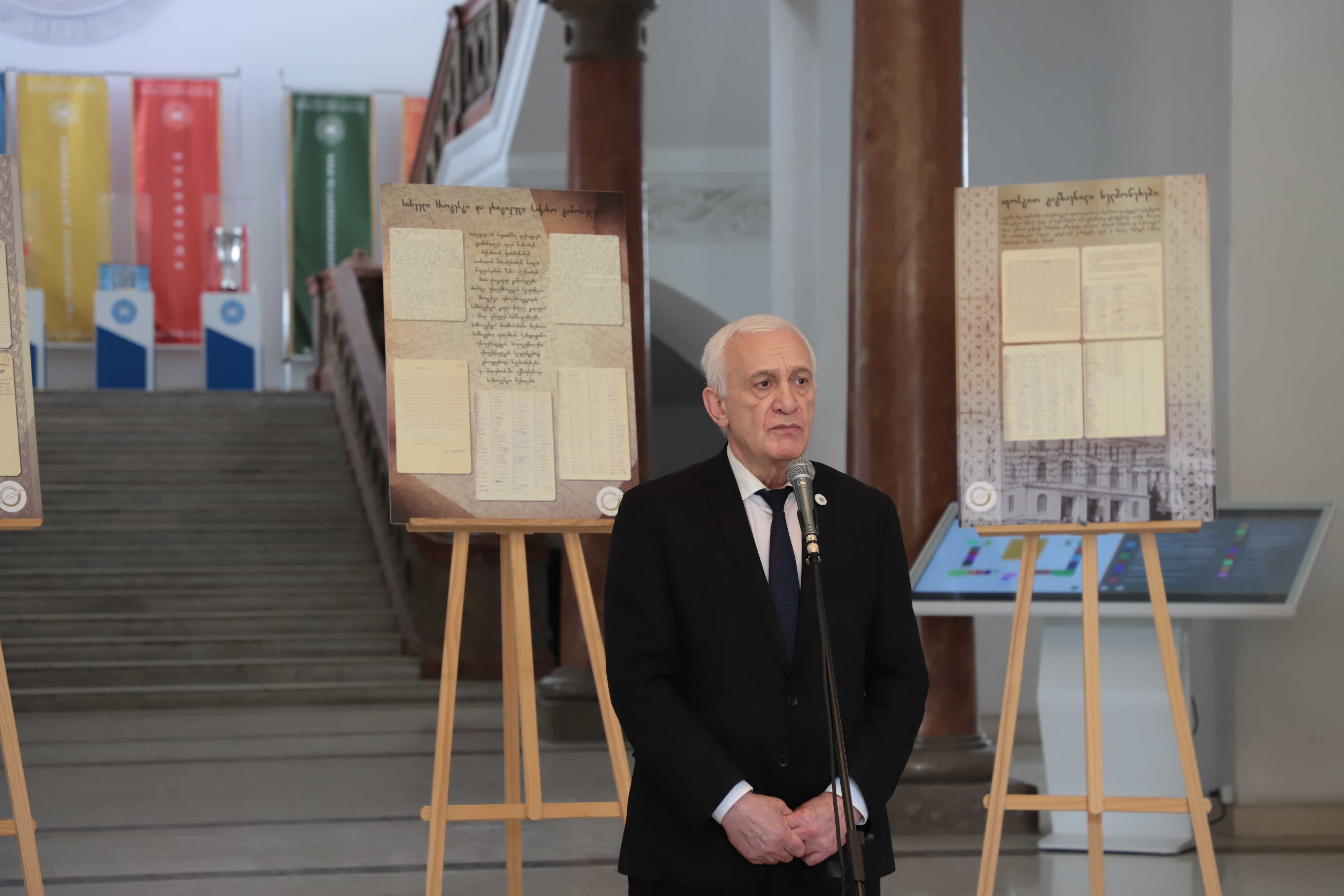 თბილისის სახელმწიფო უნივერსიტეტის რექტორმა, აკადემიკოსმა ჯაბა სამუშიამ გამოფენის გახსნაზე 14 აპრილის მოვლენებზე ისაუბრა და ხაზი გაუსვა თბილისის სახელმწიფო უნივერსიტეტის სტუდენტთა და პროფესორ-მასწავლებელთა მედგარ ბრძოლას ქართულის, როგორც სახელმწიფო ენის სტატუსის დასაცავად.