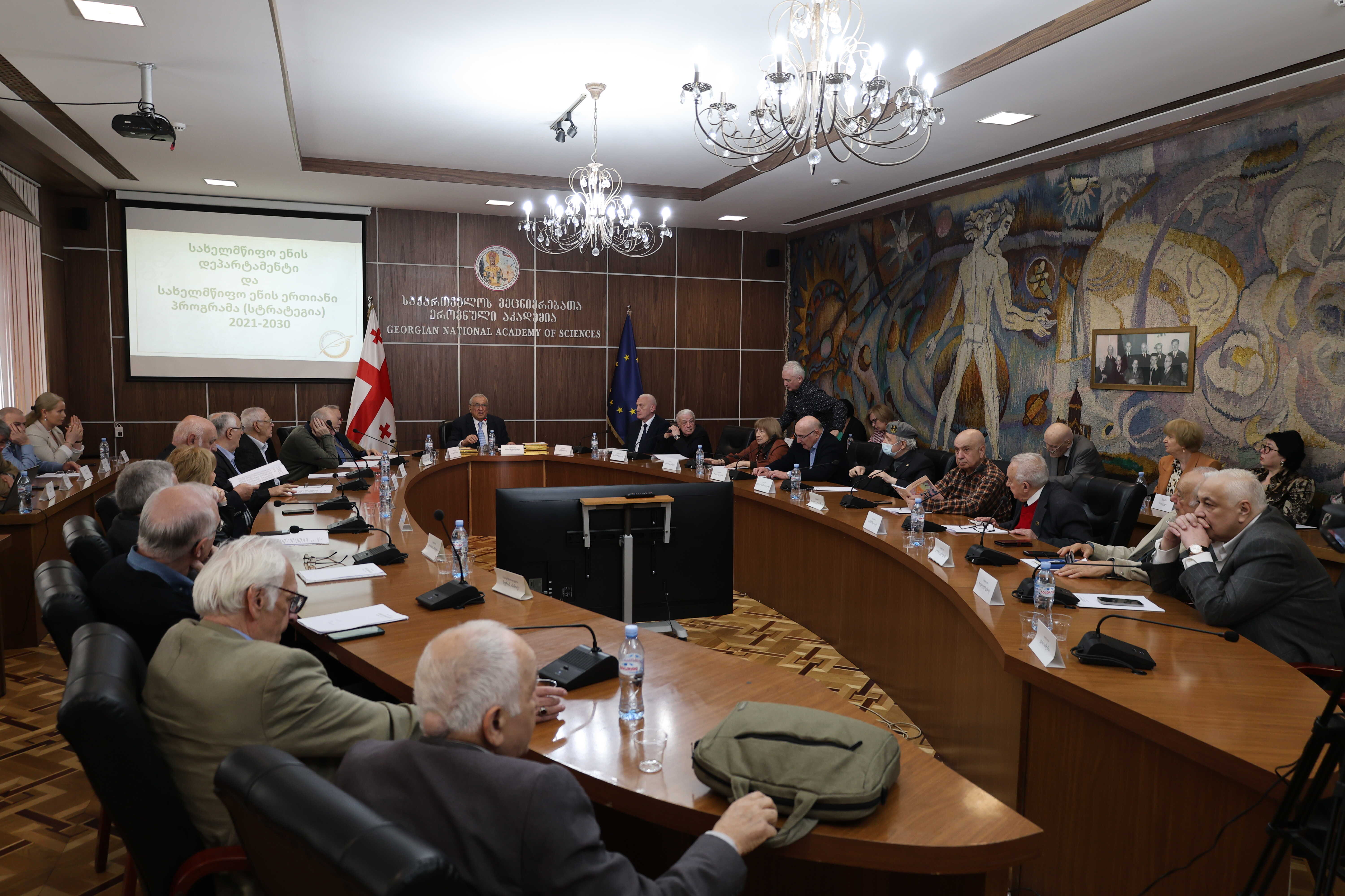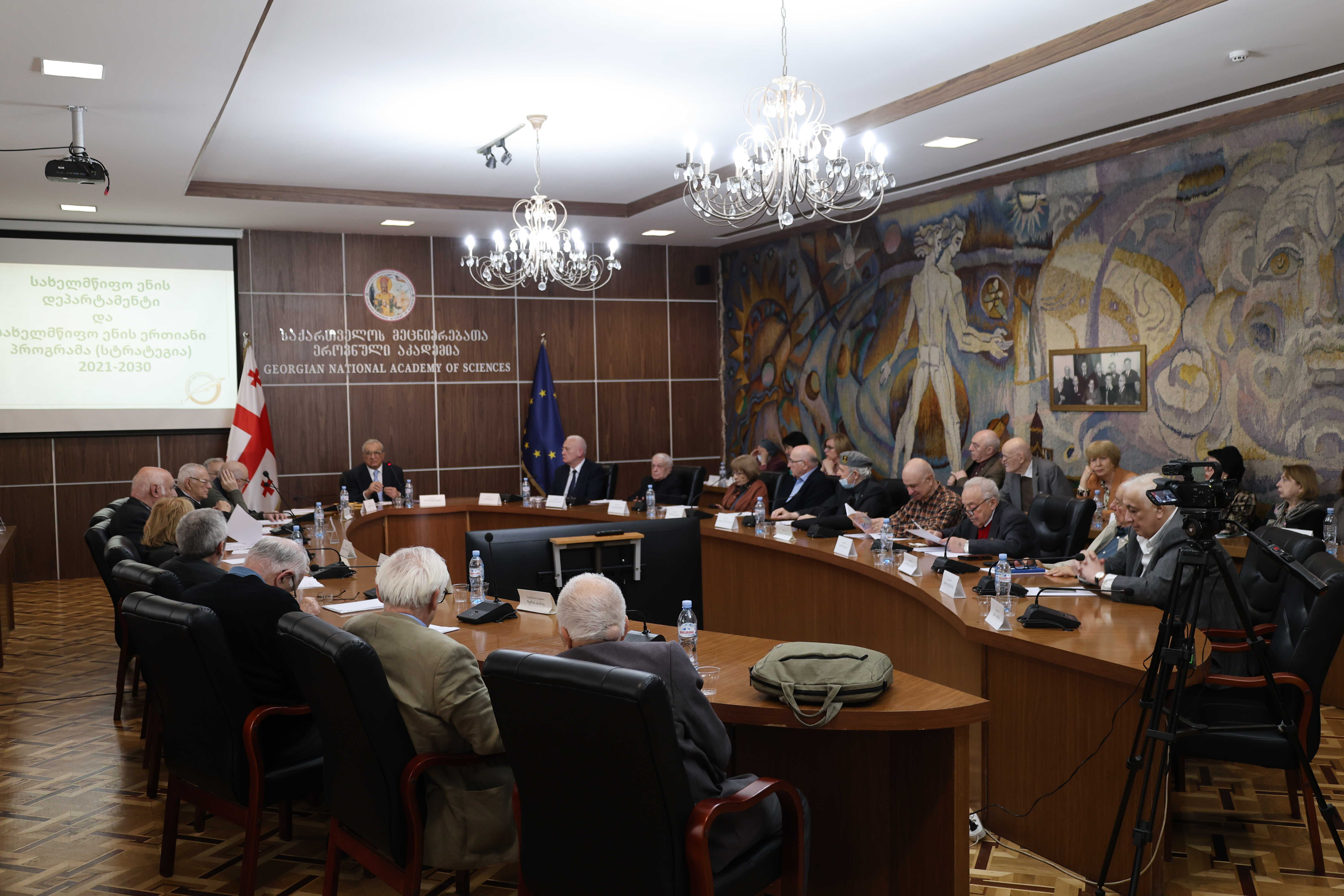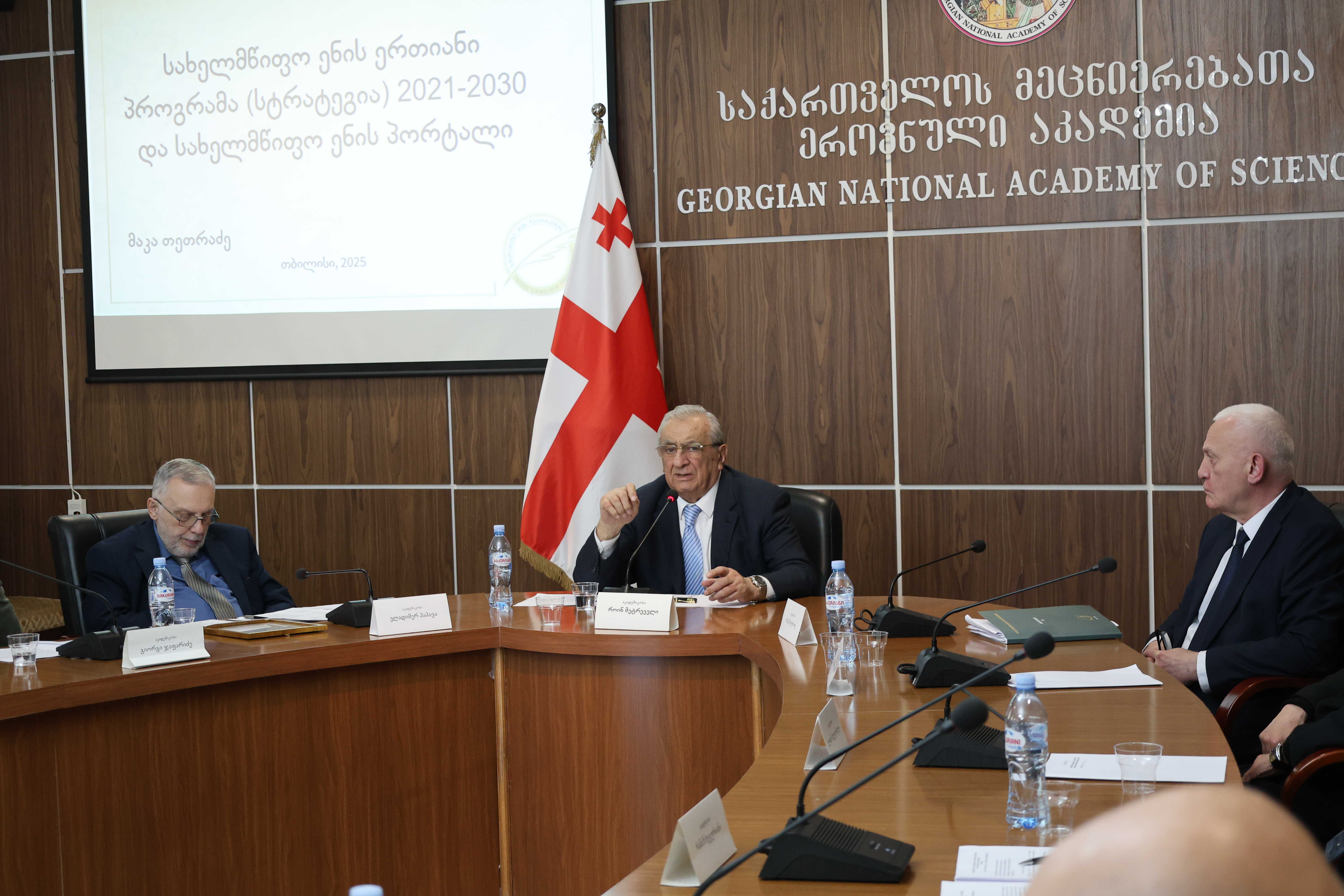 მიმდინარე წლის 2 აპრილს, საქართველოს მეცნიერებათა ეროვნულ აკადემიაში გაიმართა პრეზიდიუმის მორიგი სხდომა, რომელზეც მოხსენებით - „სახელმწიფო ენის დეპარტამენტი და სახელმწიფო ენის ერთიანი პროგრამა (სტრატეგია) 2021-2030 წლებში“ გამოვიდნენ სახელმწიფო ენის დეპარტამენტის თავმჯდომარე, აკადემიის წევრ-კორესპინდეტი გიორგი ალიბეგაშვილი და სახელმწიფო ენის დეპარტამენტის სახელმწიფო ენის ფუნქციონირების ზედამხედველობის სამსახურის უფროსი მაკა თეთრაძე.